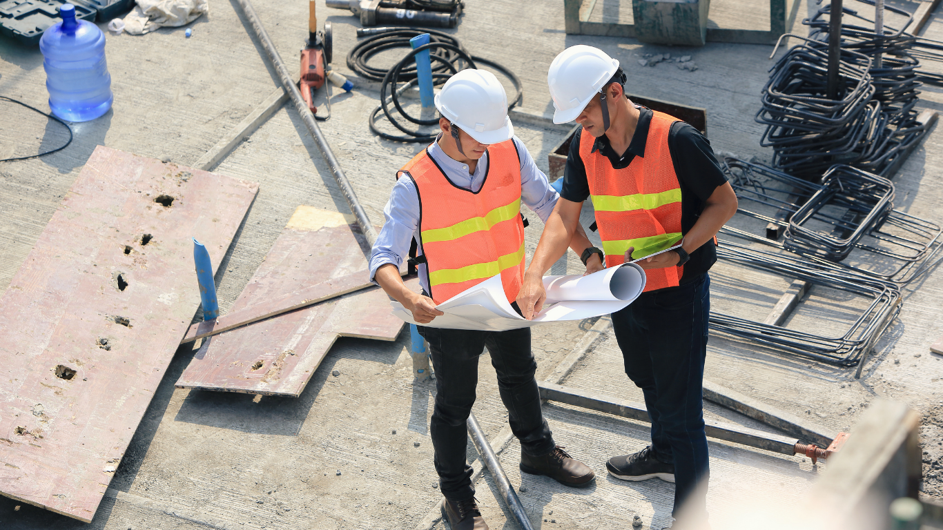建設現場で打ち合わせをするチーム